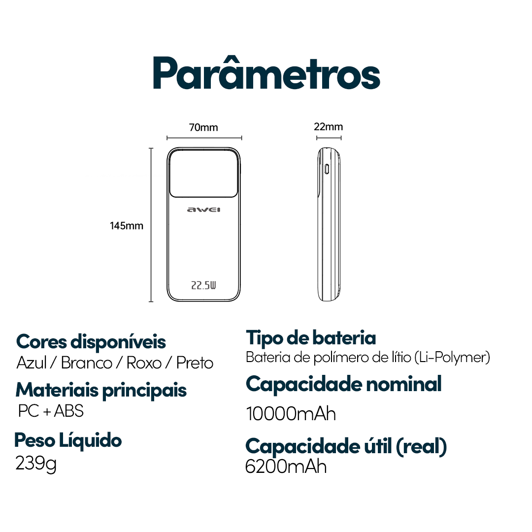 Saída Tipo-C 5V/3A - 9V/2.22A - 12V/1.67A