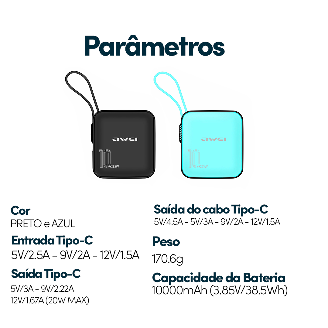 Capacidade da bateria 10000mAh (3.85V/38.5Wh)