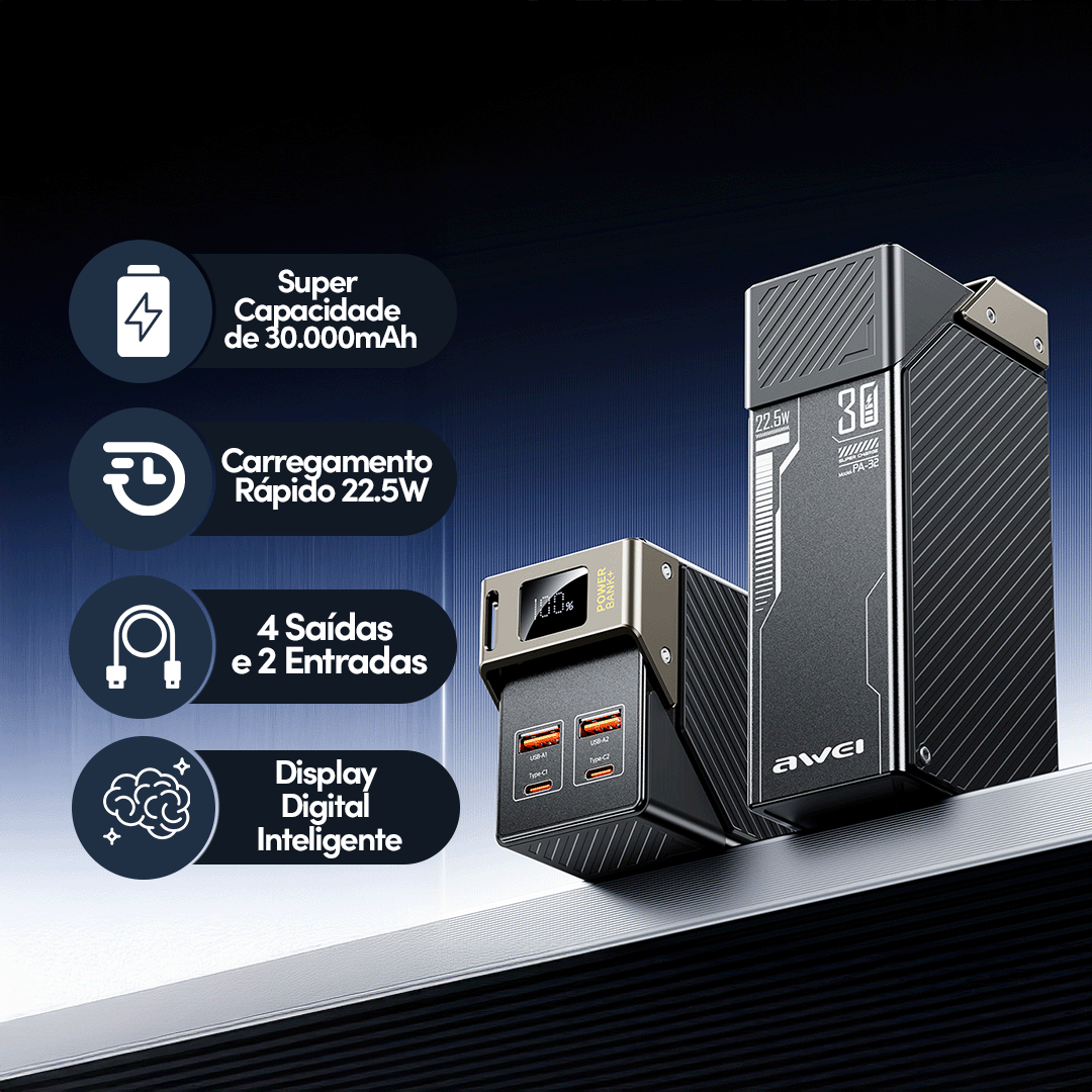 Saída USB-A1/A2 5V/3A - 9V/2A - 12V/1.5A - 10V/2.25A